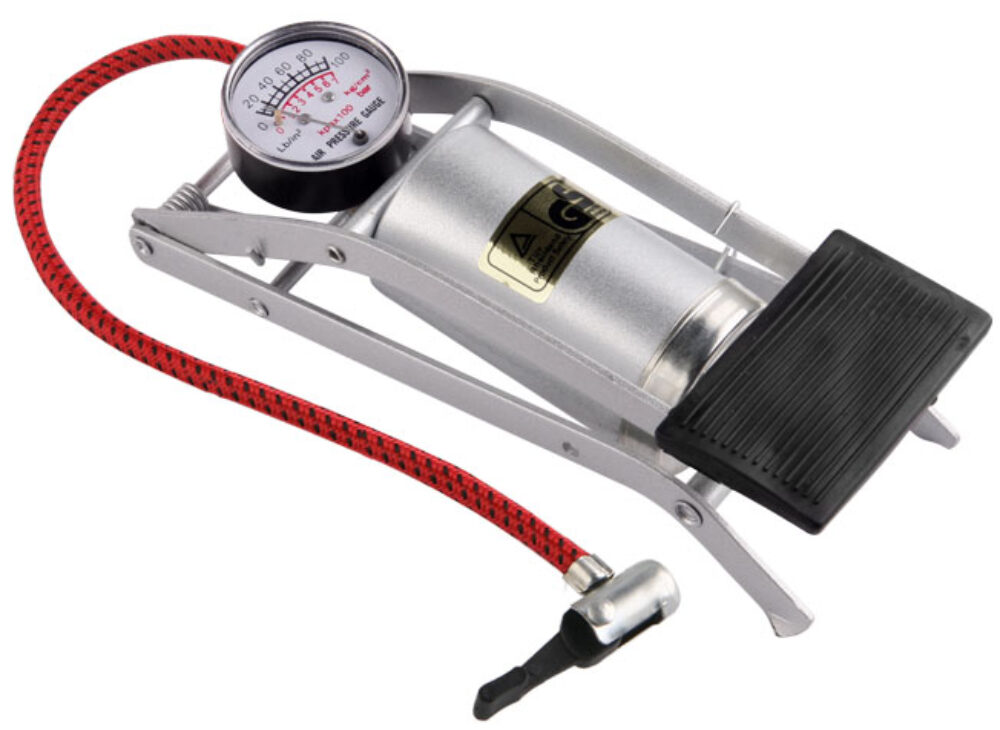 Насос ножной с манометром FP9801F стационарный цилиндр 55х100мм, шланг с автовентилем, материал сталь, серый (арт. 320005)