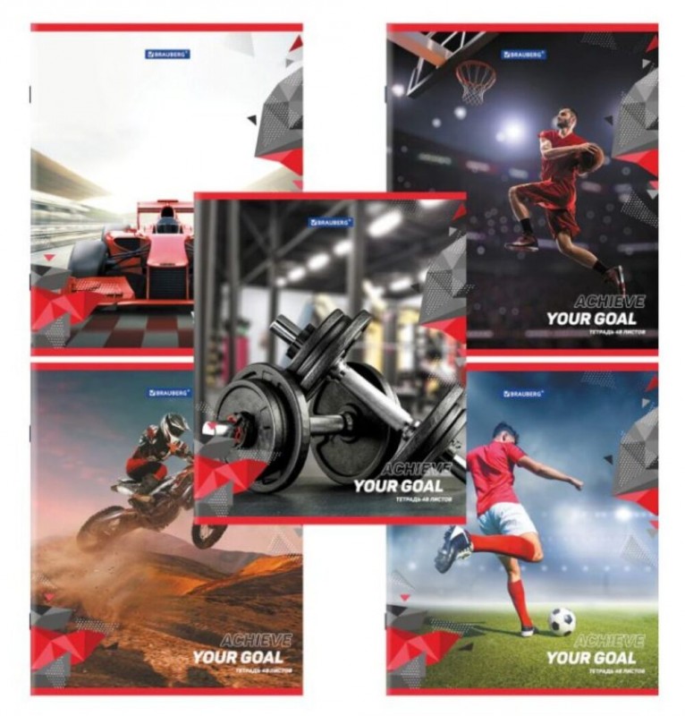 Артикул: Тетрадь 48л. А5 BRAUBERG скоба, клетка, обложка картон, "Sport Club" микс 10 в спайке