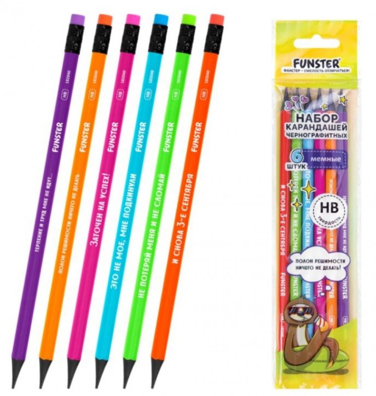 Артикул: Карандаш 6шт Набор карандашей чернографитных с мемной надписью FUNSTER FUNNY NOTES CLRD HB