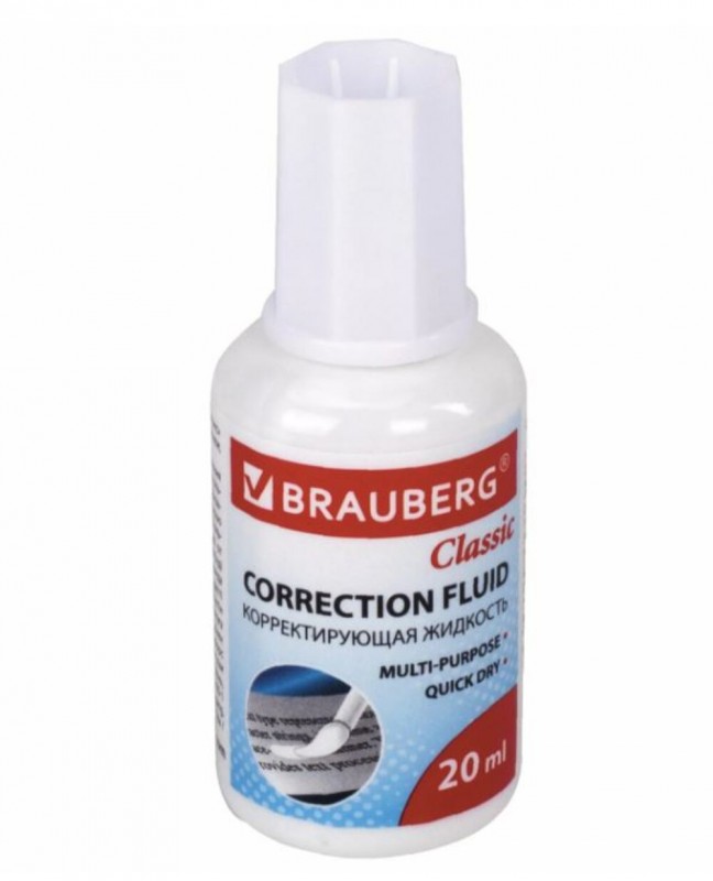 Артикул: Корректирующая жидкость BRAUBERG "Classic",быстросохнущая, 20 мл, с кисточкой, 220255