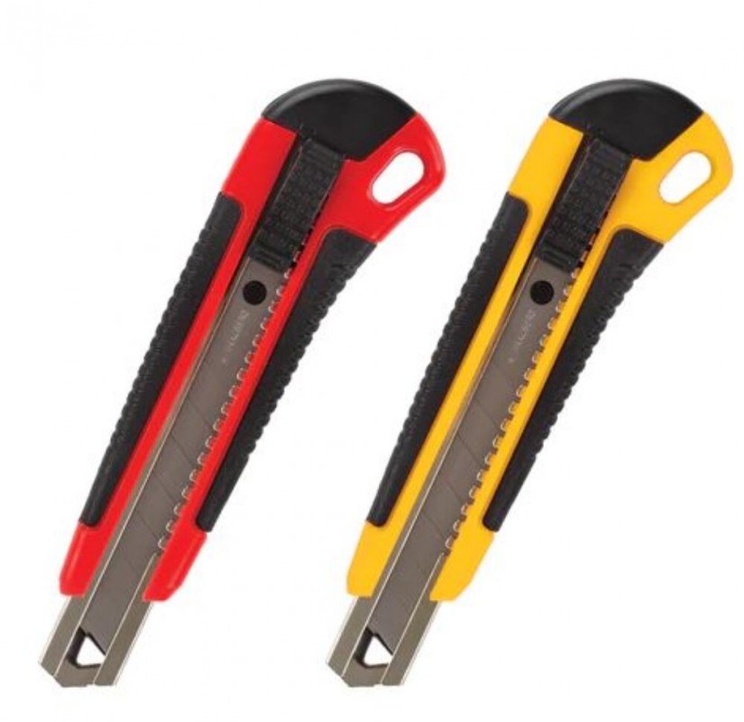 Артикул: Нож канцелярский 18 мм BRAUBERG "Universal", 3 лезвия в комплекте, автофиксатор, резиновые вставки, 230919