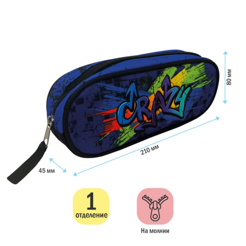 Пенал 210*80*45 ArtSpace "Crazy", полиэстер (арт. Б349250)