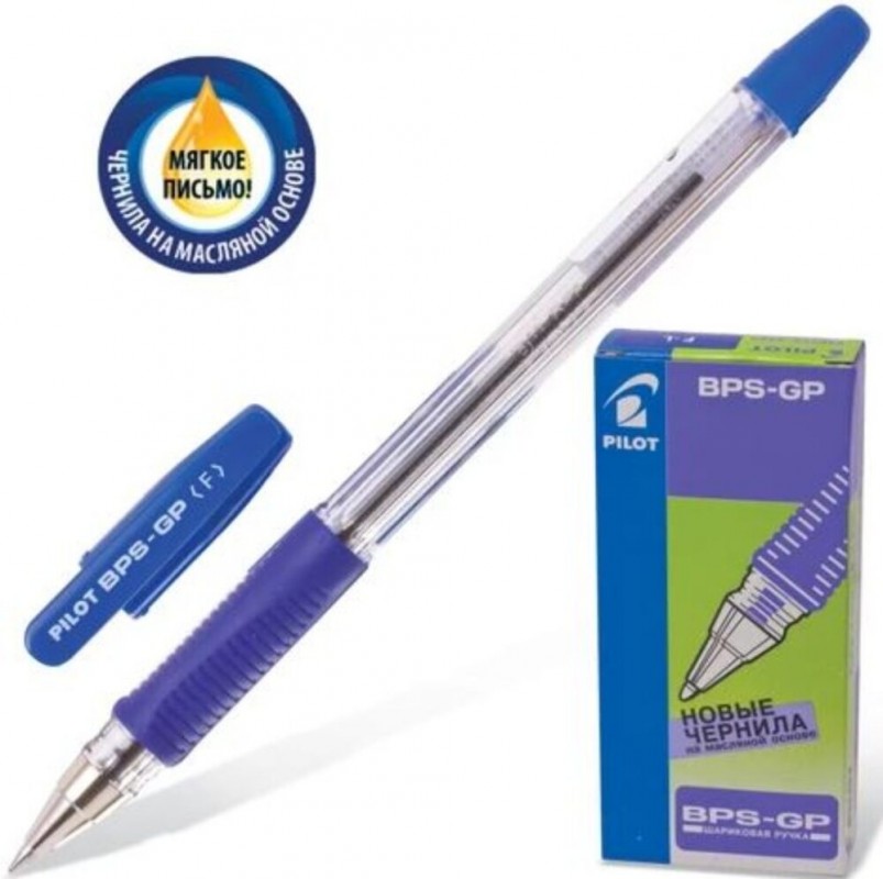 Артикул: Ручка 140202 PILOT "BPS-GP", СИНЯЯ, узел 0,7 мм шарик масл с грипом корпус прозрачный