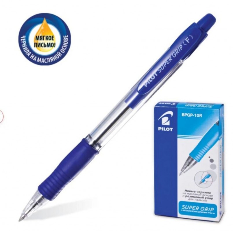 Артикул: Ручка 140242 PILOT "Super Grip", СИНЯЯ, узел 0,7 мм, шарик масл автомат с грипом