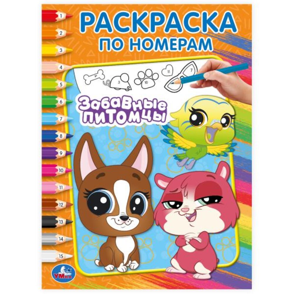Артикул: Забавные питомцы. Раскраска по номерам. 214х290 мм. Скрепка. 16 стр. Умка в кор.50шт